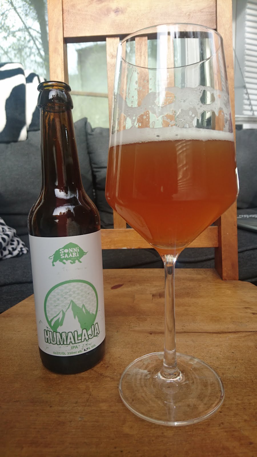 Ensimmäisenä vuorossa on pienimuotoiseksi ilmiöksi muodostunut Humalaja NEIPA. Lurautan juoman lasiin sen enempää miettimättä, ja viimeisinä liruina lasiin humahtaa kunnon kasa sedimenttiä. Hitto, miksei tullut mieleen varoa?! Olen kerran aikaisemminkin tätä juonut, mutta silloin en muista vastaavaa ilmiötä, joten yksittäisen pullon ongelmasta varmaankin kyse. Tuoksu on yllättävän pliisu, mangoa ja häivähdys hiivaisuutta (johtunee juuri tuosta ylimääräisestä aineksesta). Maku on hedelmäinen, silkkinen ja humala hiipii vaivihkaa takavasemmalta ja antaa mukavan puraisun noussen juuri sopivalle tasolle ottamatta koko palettia haltuun. Havumetsäinen raikkaus jää kielelle hyväksi toviksi. En tiedä kuinka tuoreesta yksilöstä on kyse, mutta parasta ennen -merkintä vihjaisi parikuukautiseen. Uskoisin että tämä olisi tuoreena, ilman sattumia, pykälän parempi. Nytkin suomalaisten ipojen kärkipäätä, mikä toki kertoo myös suomalaisista ipoista.—