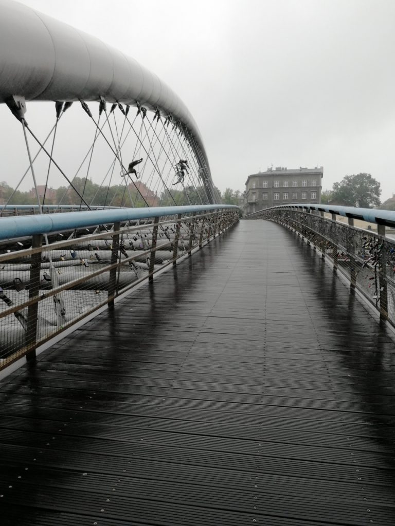 Yksin sai kävellä joen toiselle puolelle Krakovan kevyelle liikenteelle pyhitettyä,...
