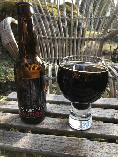 Tallinnalaisen Kalamaja Pruulikodan ruskeanmusta olut kerää ohutta kermaista vaahtoa lasin...