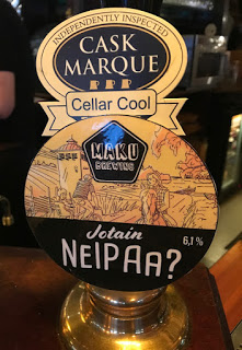 Lontoosta jenkki-IPAa, 6,2%. Samea, mutta nyt lopulta vaalea olut, tuoksussa...