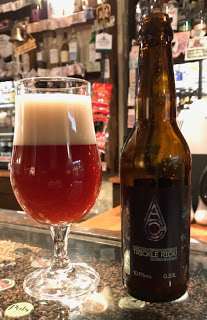 Lehellä tehty triple IPA, 10,1%, sinkkuhumalana Simcoe. Melko punaruskeaa, luumuista...
