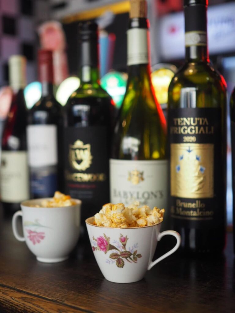 -Viinifilosofiamme on sekoitus messuja, italialaista aperitivo-hetkeä ja espanjalaista korttelibaaria. Tarjoilemme asiakkaille pöytiin edullisia viinejä (5-11€/12cl) laseittain Riedelin Veloce -laseista. Vaikka hinnat ovat edullisia, on meillä valikoimassa mm. samppanjaa ja Brunelloa. Lisäksi aperitivo-hengessä asiakkaat saavat jotain pientä vegaanista suolaista kuten noripoppareita, sipsejä tai oliiveja viinien kanssa ilman eri maksua. Musiikki saa kuulua baarissa ja ilmassa voi olla vauhdin ja vaaran tuntua.