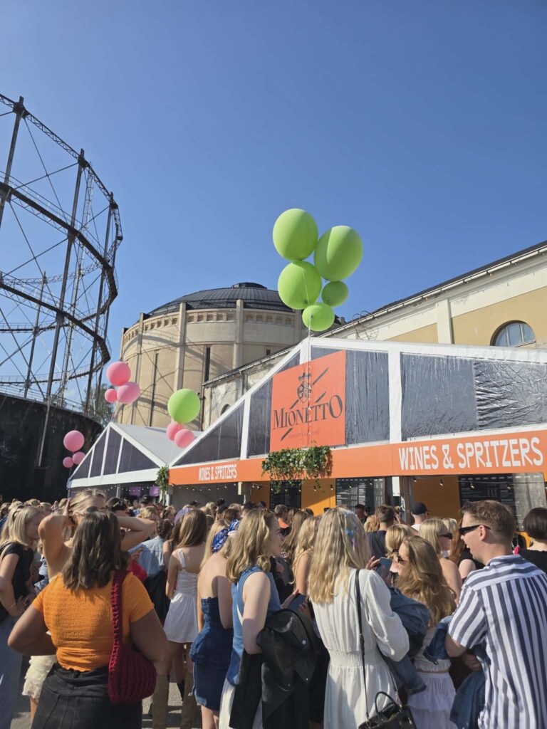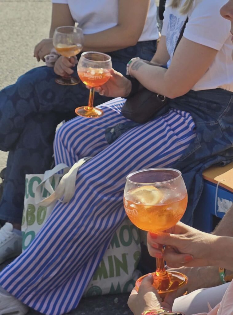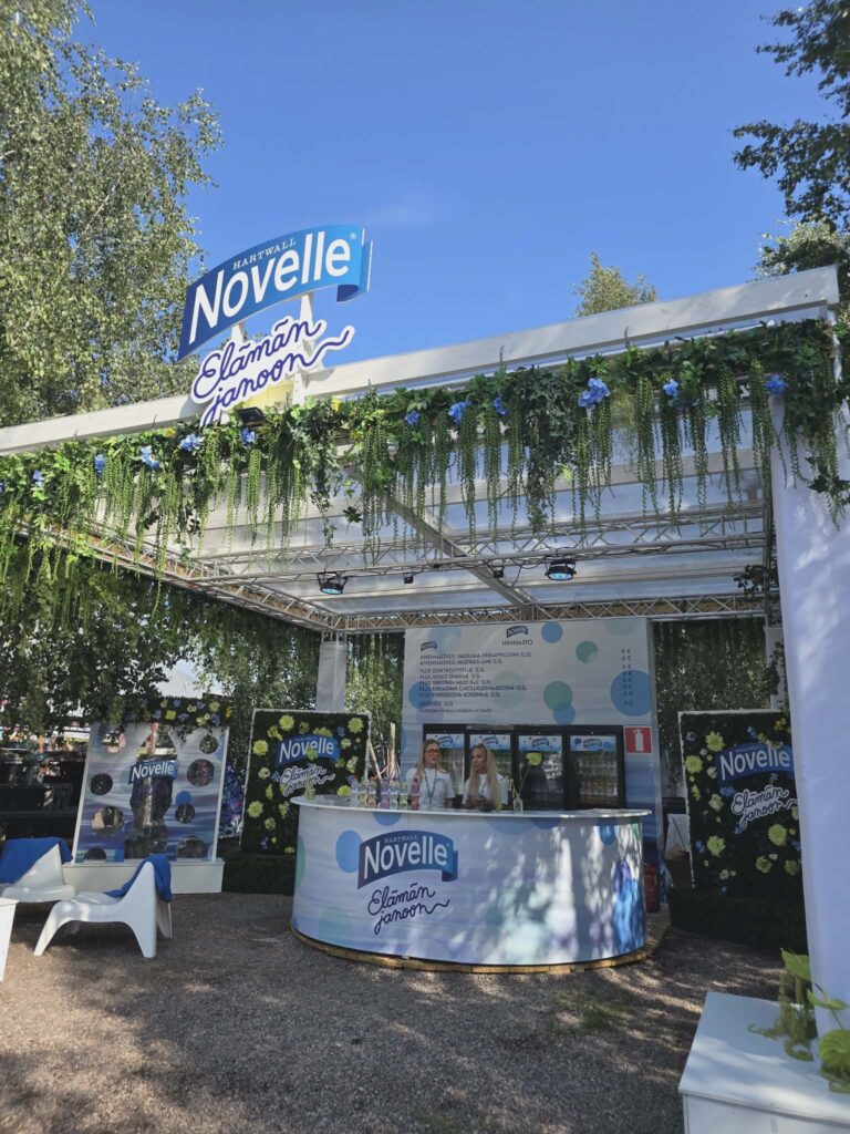 Laadukas juomavalikoima oli keskeinen osa kokemusta. Flow’n viini- ja samppanjabaarit, kuten Lanson Rosé Bar, loivat paikkoja, joissa kävijät saattoivat hetkeksi irtautua festivaalihälystä ja siirtyä toisenlaiseen tunnelmaan – lähemmäs viinibaarin hämyistä eleganssia kuin perinteisen festaritelttabaarin meteliä.