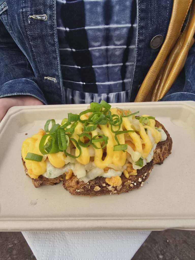 Flow’n tinkimätön vastuullisuus näkyi selvästi: festivaalilla ei tarjoiltu punaista lihaa tai siipikarjaa lainkaan, ja jokainen ravintola oli velvoitettu tarjoamaan sekä vegaanisen annoksen että suomalaisesta kalasta valmistetun vaihtoehdon. Tämä periaate ei ollut pelkkä rakenteellinen linjaus, vaan näkyi konkreettisesti festivaalialueen ruokalistoilla – rohkeissa kasvipohjaisissa makuyhdistelmissä, innovatiivisissa kalaruoissa ja luovissa annoksissa, jotka kulkivat kävijöiden käsissä yhtä tiheään kuin festarirannekkeet.