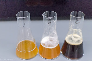— Kun aloin aikanaan käymään Alkon mediapruuveissa, harmittelin sitä että sokkomaistelu oli tarjolla vain viineille. Nyt erikoiserien myötä myös olutniilot ovat alkaneet päästä nauttimaan sokkomaisteluista, joskin vain erikoiserien osalta. Maisteltavana oli kolme neljästä oluesta. Luin vahingossa erikoiserän teeman ”Trendikkäät hapanoluet” etukäteen. Vaikka happamista pidänkin, tämä ei varsinaisesti kuulostanut kovin ”erikoiselta”.