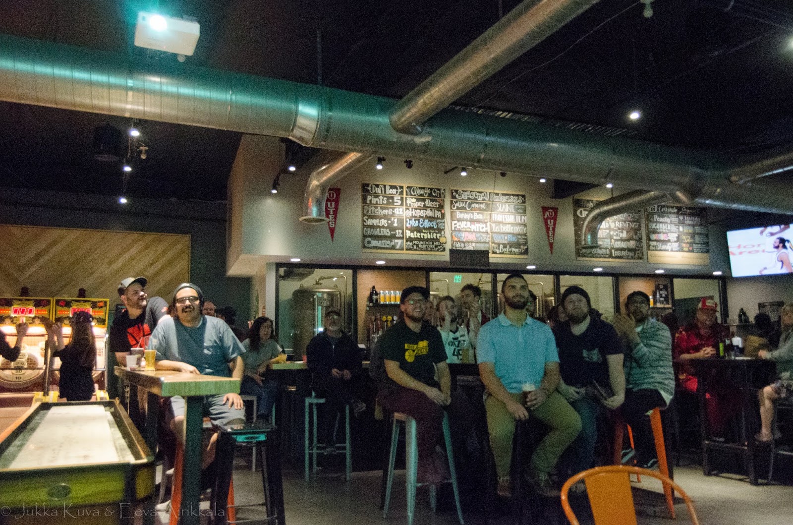 Koska Epic meni luonnollisesti todella aikaisin kiinni, ilta jatkui Proper Brewing Co:n puolella. Ovella kerättiin henkilötiedoista nimi ja passin numero vihkoon, koska laki. Koska NSA tietää kaikki liikkeemme muutenkin, ei tämä jaksanut liikaa häiritä. Hanavalikoima oli komea, joskin 4 % vahvuusraja tarkoitti että oikeastaan vain happamat hanatuotteet maistuivat siltä miltä niiden toivoisi. Pullosta löytyi vähän parempaa täältäkin. Tunnelma Properilla oli loistava, sitä tosin avitti hieman Utah Jazzin hyvä menestys NBA:n pudotuspeliottelussa, jota näytettiin screeniltä. Otteluhan pelattiin samassa kaupungissa, mutta meillä ei ollut tällä(kään) kertaa aikaa tai rahaa hankkia lippuja.