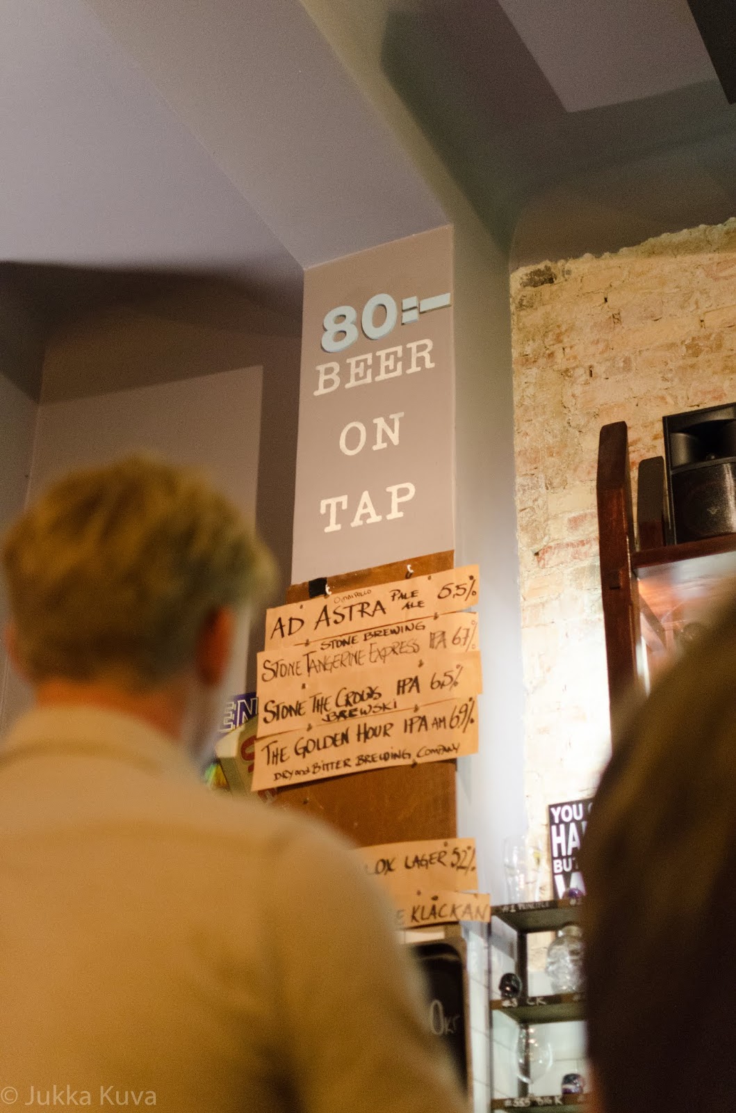 Matsin jälkeen siirryimme vielä SKIPiin, jossa tap takeoverin viimeinen jäljellä ollut Omnipollo loppui silmien edessä. Nappasimme silti taster flightin talon hanoista ja jäimme suomalaisuudestamme kiinni pöytäseurueelle noin viidessä minuutissa. Mukavaa väkeä olivat. Sain myös tiskiltä ilmaisen Modern Timesin oluen jonka asiakas palautti avattuna mutta juomattomana ”koska se oli vanhentunut”. Oikein maistuva IPA edelleen. Oluiden loppuessa totesimme yhteen ääneen ”