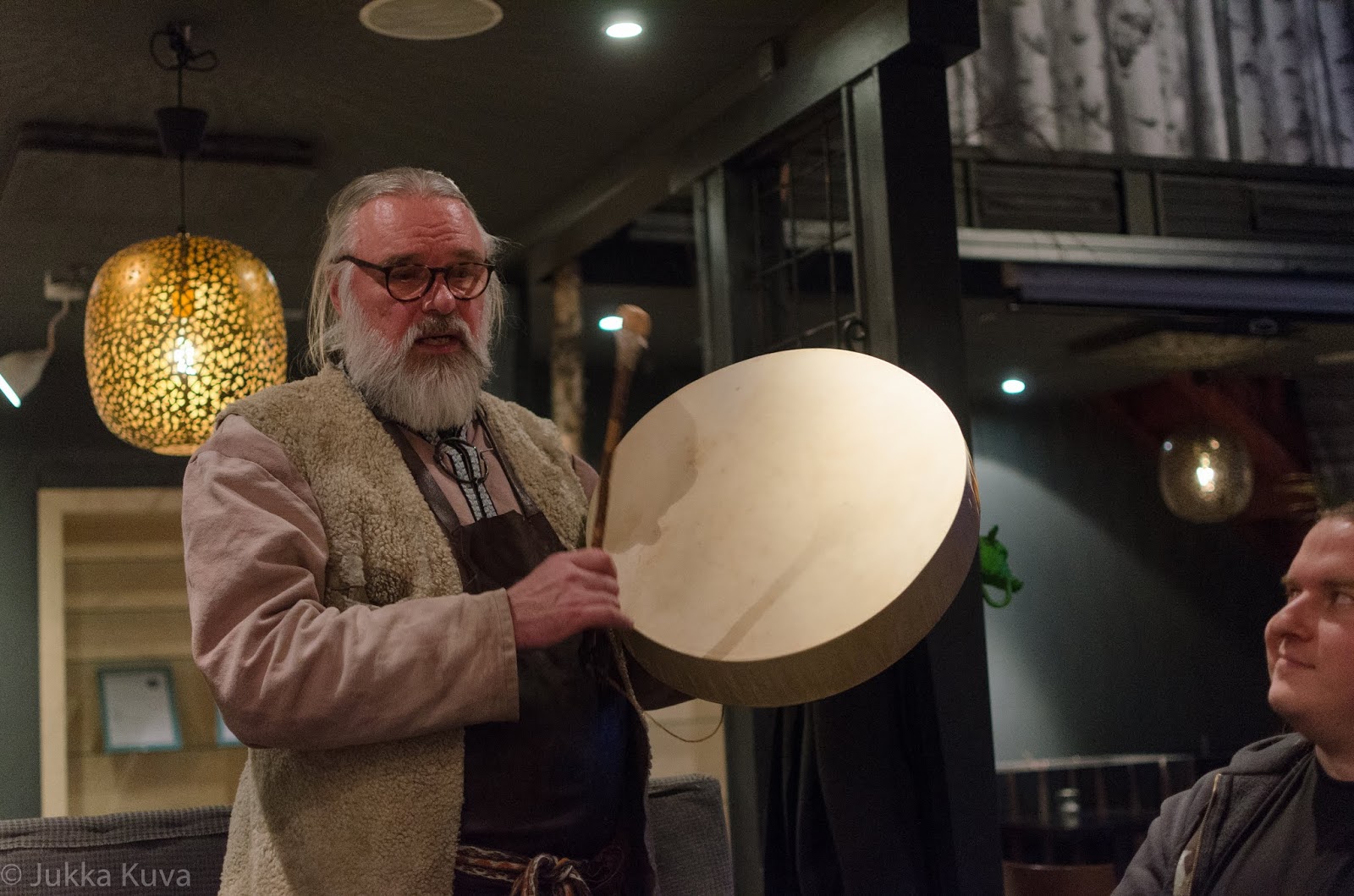 Jouko piti meille muinaisen rummun säestämän esitelmän muinaisoluista, jota kuunnellessa maisteltiin viittä eri sahtia.