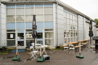 Alue ei kieltämättä ollut erityisen idyllinen, mutta matkaa keskustasta tuli silti vain pari kilometriä. Luulin että kävelemme vain panimopuotiin, mutta paikalla oli myös taproom, jonka luonnollisesti testasimme. Taproomia vartioi miellyttävä panimokoira ja Kuninkaankartanon panimoa aiemmin pyörittänyt (vai siellä työskennellyt, en ole enää varma) perustajapariskunta oli työn touhussa, vaikka olikin lauantai. Oluet olivat oikein maistuvia, eikä niistä ainakaan monen aloittelevan panimon ongelmaksi nousevia vahvoja ”talon makuja” löytynyt. Joimme kaikki kolme hanaolutta ja ostimme vielä neljättä pullossa mukaan. Toivottavasti lähitulevaisuudessa myös Scandic saa oman oluensa, ja kyllähän Forssan baareista pitäisi kaikista Olutmyllyn tuotteita löytyä ainakin yksi.