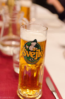Svejk – olutta, mutta listalta löytyi mm. Olutmyllyn tuotteita. Sekä kokous että ruokailu sujuivat hyvin. Henkilökunta antoi ehkä hieman liikaakin meille kokoustamisrauhaa, sillä meinasimme myöhästyä illan viimeisestä pöytävarauksesta. Jälkiruokaa tilanneet jäivät vielä syömään kun etujoukko kiiruhti ottamaan jo kertaalleen puolella tunnilla siirrettyä pöytävarausta haltuun.