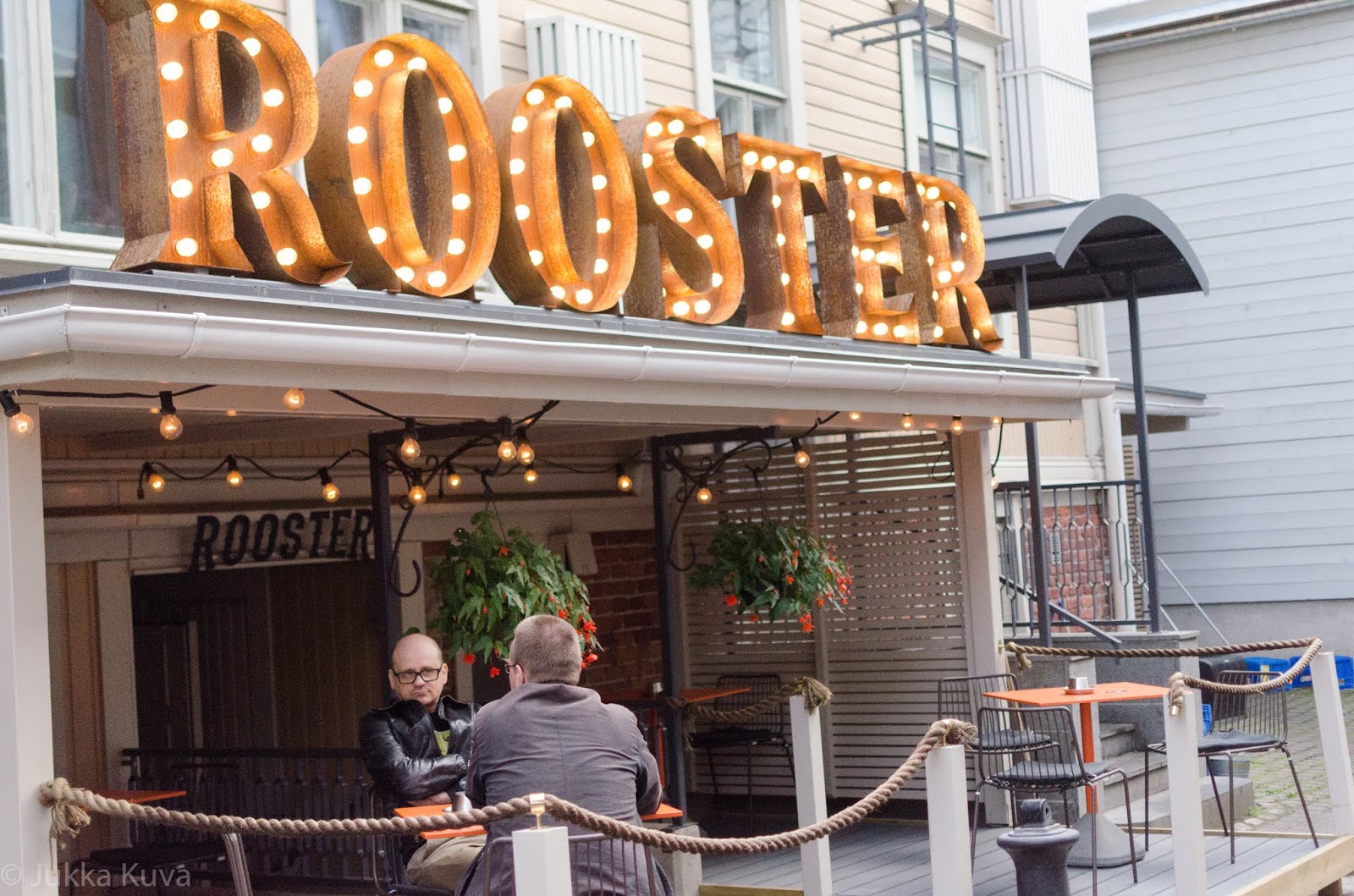 Viimeinen suunniteltu olutstoppi matkalla oli toinen klassikko, Rooster. Viime reissullani kävelin kahvilaan autuaan tietämättömänä alakerran baarista, jonka huomasin sattumalta vasta juuri lähtiessäni. Nyt menimme suoraan komean alakerran terassin kautta sisään, eikä täältäkään juuri valittamista löytynyt. Valikoima oli laaja ja sopivan erilainen kuin kahdessa edellisessä paikassa. Paikallisia pienpanimoita oli täälläkin hanassa sopivasti.