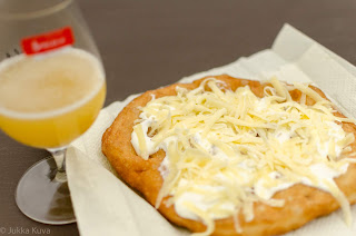 tämä) ja lángos viereen. Oli krapulaa tai ei, tästä se päivä käynnistyy.
