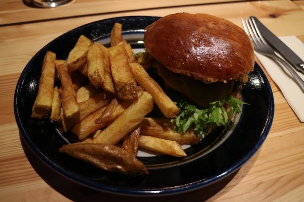 Vaimoni otti lohikeittoa ja lapset hampurilaiset. Jokainen heistä tykkäsi ruoistaan erittäin paljon. Itse tilasin Haapalan kyyttöburgerin ja nyt olimme täydellisen hampurilaisen äärellä. Koko burgeri oikein suli suuhun ja makuun pirteyttä tarjosi pikkelöity punasipuli. Tämä syömäni kyyttöburgeri on yksi parhaita hampurilaisia mitä olen eläissäni syönyt. Se on paljon sanottua, koska lähes kaikissa ravintoloissa otan testiin hampurilaisen. Siihen kylkeen rehelliset maalaisranskalaiset, jotka myös olivat täydelliset, eivätkä liian rasvaisia. Otimme ranskalaisille kaikki ravintolan kuusi dippiä ja sieltä löytyi lisää hienoja makuja, kuten tervapuolukkamajoneesi.