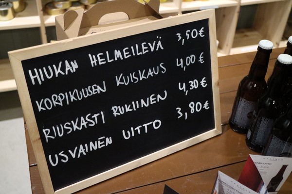 Rakennus on vanha navetta, jossa on ollut viimeksi lehmiä vuonna 1986. Ravintolasta on suoraan näkymä panimolle, jossa kävimme myös tutustumassa. Panimovierailun jälkeen siirryimme pöydän äärelle miettimään millä ryhtyisimme täyttämään vatsojamme. Ravintolan pääsisäänkäynnin edustalla sijaitsi myös panimopuoti, josta pystyi ostamaan oluita mukaansa.