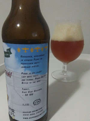 Itsellä on tässä jo jonkin aikaa ollut sellainen brittiolutkausi meneillään ja yrittänyt saada käsiini kaikenlaisia brittioluita. Tämän Hopping Brewstersin pullon löysin Joensuun Prismasta ja ihmettelin, että mikäs tää Plucky Penny on. Sitten huomasin, että Bitter ja välittömästi pullo ostoskärryyn. Harvassa ovat Suomessa Bitterit ja se, että vielä sattuisi hyvä sellainen, niin vieläkin harvemmassa. Muutenkin brittioluita on melko vähän saatavilla ja se on suoraan sanottuna harmi.