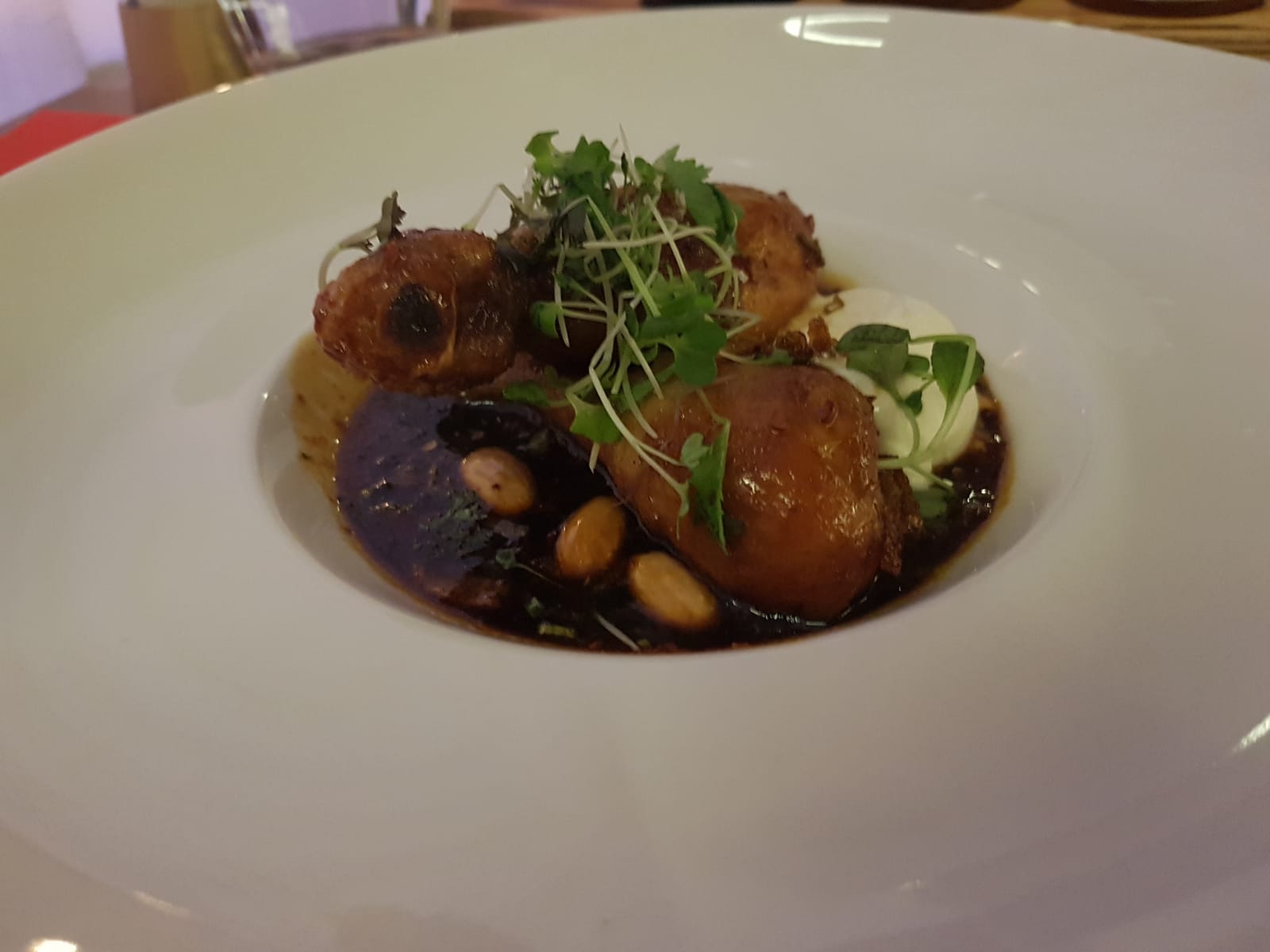 Alkupalaksi tilasin Panimon Tartarin, jossa oli kotimaista naudan marmorifileetä, pikkelöityä puolukkaa ja ryytisinappimajoneesia. Vahvoja makuja, jotka saatu nätisti nidottua hyväksi kokonaisuudeksi. Ystäväni tilasi Olutglaseerattua kananpoikaa ja sitruunalla maustettua crème fraîchea. Maistoin palasen ja olipa muuten mehevää kananpoikaa.