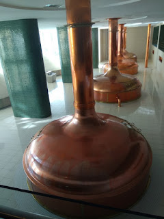 Panimokierroksen aikana näimme vanhan panimon ja uuden panimon. Kiinnostavinta oli päästä kävelemään heidän kellareihinsa. Aurinkoinen ja erittäin lämmin päivä oli vaatinut veronsa ja meikäläinen alkoikin hikoilla, kuin vanha sika. Viileisiin kellareihin pääseminen ja puutynnyreiden kultaisen nektarin maistelu auttoivat koko ajan lisääntyvään janon tunteeseen ja hikoiluun. Panimon alla on n. 9 kilometriä pitkät tunnelit, jotka on rakennettu käsipelillä n. reilu 170 vuotta sitten. Siellä oli neljä kappaletta ns. jääkaappeja, jotka olivat suuria ja korkeita huoneita, joiden katossa oli reikä. Näiden huoneiden tarkoituksena oli viilentää kellarit. Läheiseltä järveltä työmiehet kävivät sahaamassa irti kaiken jään ja sen sitten pudottivat katon luukusta ”jääkaappiin”. Jääkaapissa sitten jää pilkottiin pienemmäksi ja se sulaessaan valui ympäri kellarin lattioita jäähdyttäen tiloja. Kellareissakin silloin työskenteli noin 200 henkilöä / työvuoro.