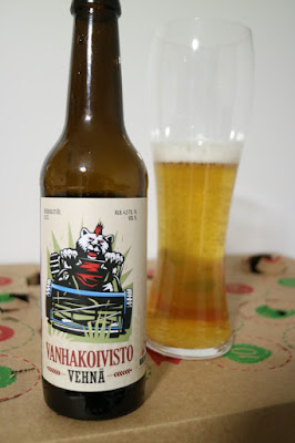 Sitten vuorossa vehnäistä olutta porilaiselta Rocking Bear Brewersilta. Tämä Vanhakoivisto Vehnä on etiketin mukaan kevyen hapan janonsammuttaja, joka nojaa vahvasti perinteiseen saksalaiseen suodattamattomaan Hefeweizeniin.