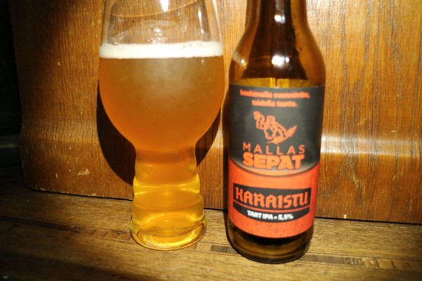 Kakkosluukku auki ja sieltä löytyi MallasSepät Oy:n Karaistu Tart IPA. Harvoin on tullut maistettua happamia ipoja tai ainakaan sellaisia jotka on tarkoituksella hapatettu.