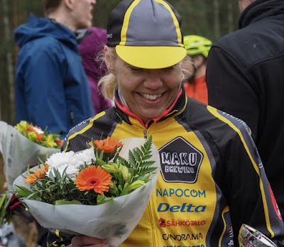 Sitten syksyllä, kun toivuin pahasta pyöräkolarista, Essi kysyi liittyisinkö Olutpolkijoihin. Minä olin aivan otettu sellaisesta kunniasta, että minulle soitetaan pyöräseurasta tulisinko heidän seuraansa. Ilmeisesti Essillä oli joku pitkän ajan suunnitelma, koska pelkkä jäsenkirja sitten ei riittänytkään. Alkoikin hirveä lobbaus Masterkisojen ajamiseen. Muutaman kisan lupauduin ajamaan, mutta miten ihmeessä kaikki maantiekisat sitten ajoin. Seurauksena oman sarjan maantie- ja tempomestaruus.