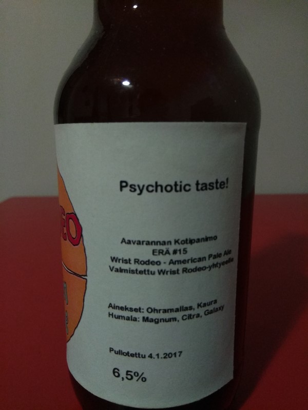 Seuraavana maistoon Aavarannan Kotipanimon valmistama bändiolut, joka tyyliltään American Pale Ale ja valmistettu Wrist Rodeo –nimiselle bändille.