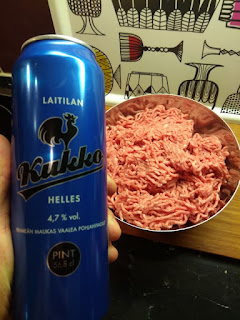 Pari päivää sitten järjestin parille ystävälleni illanistujaiset, jota varten valmistin kolmen ruokalajin illallisen. Näiden ruokien valmistuksessa käytin olutta ja ajattelin myös jakaa reseptit Teille, koska ne toimivat oikein mallikkaasti. Valmistin ruoaksi oluessa marinoituja porsaan ribsejä, jotka savustin sähkösavustimessa. Pääruokana oli hampurilaisia, joissa oli kahdenlaisia pihvejä. Toinen pihvi oli aivan perus jauhelihapihvi ja toisessa olin marinoinut jauhelihan oluessa. Tämä jauhelihan marinointi oli itselleni sellainen kokeellinen testi, koska en ollut sellaista ennen tehnyt, enkä myöskään mistään löytänyt että näin olisi tehty. Näiden pihvien välillä tuli suuri ero ja oluessa marinoitu pihvi oli huomattavasti mehukkaampi, vaikka olikin hankalampi paistaa pehmeän rakenteensa takia. Jälkiruokana oli Panimo Hiisin Iku-Turso Imperial Stoutista valmistettu pirtelö. Sellaista settiä tuli tehtyä ja mennään nyt reseptien pariin, että pääsette tekin kokeilemaan.