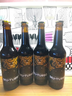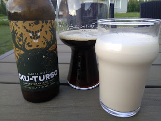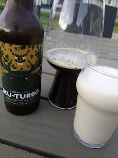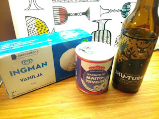Lopuksi vielä jälkiruoan pariin. Valmistin pirtelön, jossa mausteena oli Hiisin Iku-Turso Imperial Stout. Kyseinen olut voitti vähän aikaa sitten Suomen parhaan Stoutin tittelin, joten ei kai sitä voi käyttää kuin Suomen parasta myös tässä pirtelössä. Oluen valinnalla saatte huikeitakin eroja tähän jälkiruokaan ja Iku-Turson vahva humalointi teki sen, että se tuli melko vahvasti esille myös pirtelössä. Näin ollen miedommalla humaloinnilla varustettu Stout tekisi lopputuloksesta pehmeämmän. Siltikin mahtavan makuinen jälkkäri. Tätä reseptiä testailin edeltävänä päivänä ja lisäsin reseptiin kondensoitua maitoa, jolla lopputuloksesta tuli pehmeämpi. Eri Stout –valinnalla tämän kondensoidun maidon voi jopa jättää pois. Kokeilkaa erilaisia, niin löydätte oman suosikkinne.