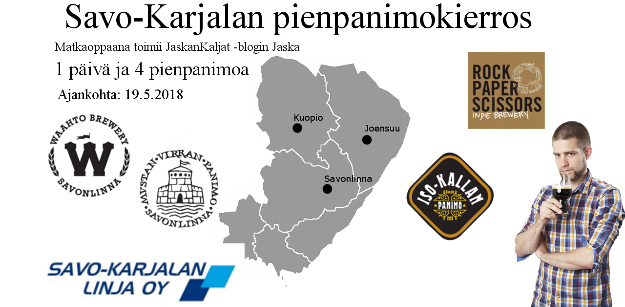 JaskanKaljat -olutblogi järjestää Savo-Karjalan pienpanimokierroksen 19.5.2018, joten lähdehän sinäkin mukaan reissuun. Reissu starttaa Joensuusta ja palaamme illalla myös takaisin Joensuuhun. Tulemme kiertämään yhden päivän aikana neljä suomalaista pienpanimoa. Kierrettävät panimot ovat: