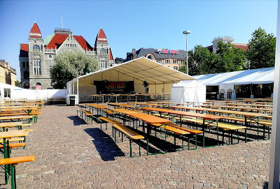 Helsingin SOPP on yleisesti ottaen lähes aina ollut se kesän kuumin olutfestivaali, mutta tämän vuoden NEIPA-helteet heittivät heinäkuun loppuun sellaiset ennen kokemattomat lukemat, että niin tiskin edessä sekä takana hiki virtasi kuin Kailon saaressa Muumilla. Festivaalit olivat tällä kertaa jopa viisi päiväiset. Itse tulin paikalle keskiviikkona Suomen Paras Olut -kilpailun tuomarointien merkeissä ja täytyy myöntää, että kuumuus teltan sisällä saattoi vaikuttaa arviointikykyyni alentaen arvosanoja, mutta näin toki kaikkien maistissa olleiden oluiden kohdalla tasapuolisesti. Helle kiihdyttänee olut myyntiäkin tiettyyn pisteeseen saakka, mutta jossain vaiheessa saavutetaan raja, jolloin edes raikkainkaan lager ei kertakaikkiaan houkuttele. Rautatientorin halutuimmaksi hanaksi osoittautuikin se yksi ja ainoa vesipiste, johon jono äityi monasti niin sanotusti jopa Omnipolloisen pitkäksi. Itse henkilökohtaisesti huomasin juovani tuomarointien tauoilla keskimäärin litran vettä per laaki. Aqua-hanan ylle tekstailtu ”Bud Light” ilmestyi päivittäin seinälle kuin ”Elvis oli kala” –graffiti Saimaan rannalla aaltopeltiin.