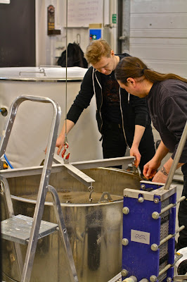 | Vuoden 2017 KimitoKeiky-kilpailun voittajat Sami Huuskonen ja Jani Flinkman oluen teossa. |