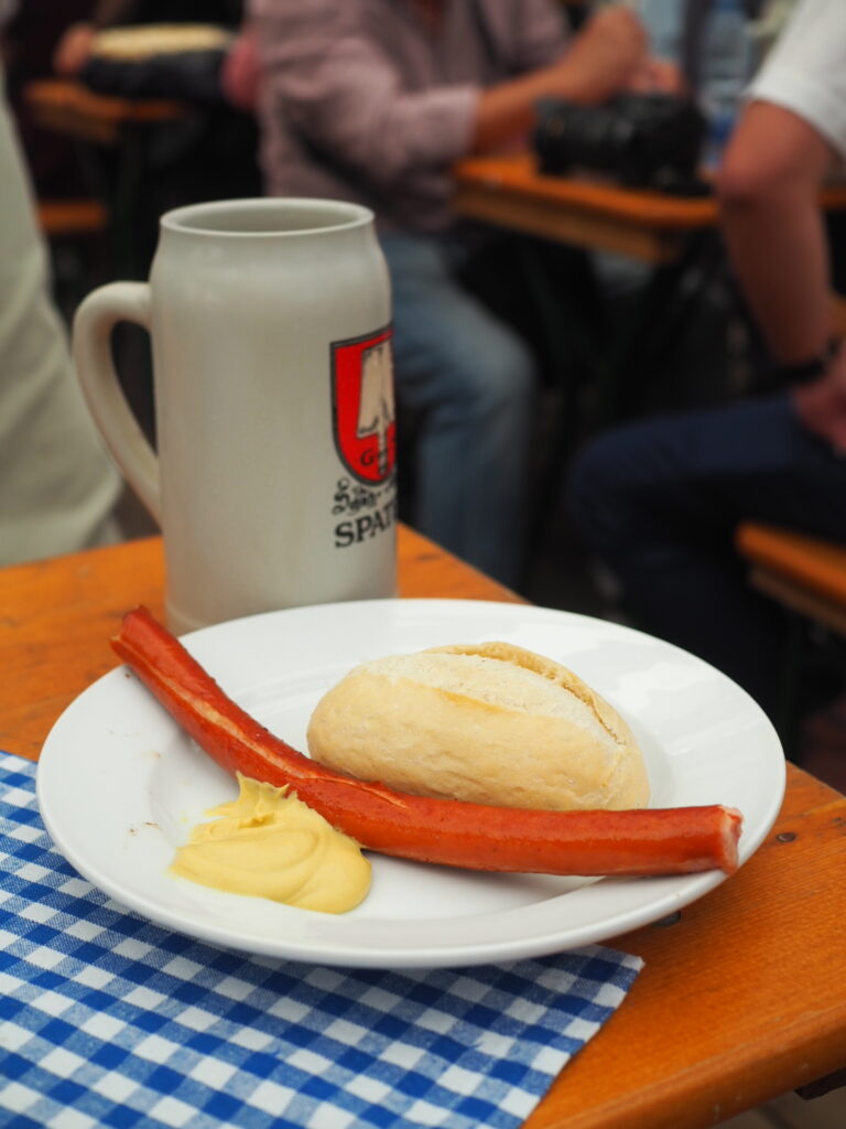 Saksalaisille oluttuville ja -terasseille on perinteisesti tyypillistä, että sieltä saa vain yhden panimon tuotteita, joten aina ei kannata odottaa hurjan laajaa valikoimaa olutmerkkien tai edes tyylien osalta. Oluiden lisäksi melkein joka paikassa voi myös syödä, ja mitäpä olut olisikaan ilman paikallista currywurstia tai valkoista, keitettyä aamupalamakkara weißwurstia, joka syödään usein ilman kuorta. Hieman kevyempi naposteltava on taas pretzel, ulkoa rapea ja sisältä sitkoinen suolarinkeli, joka tuokin hyvin esiin saksalaisen oluen maltaisuuden suolaisuudellaan.
