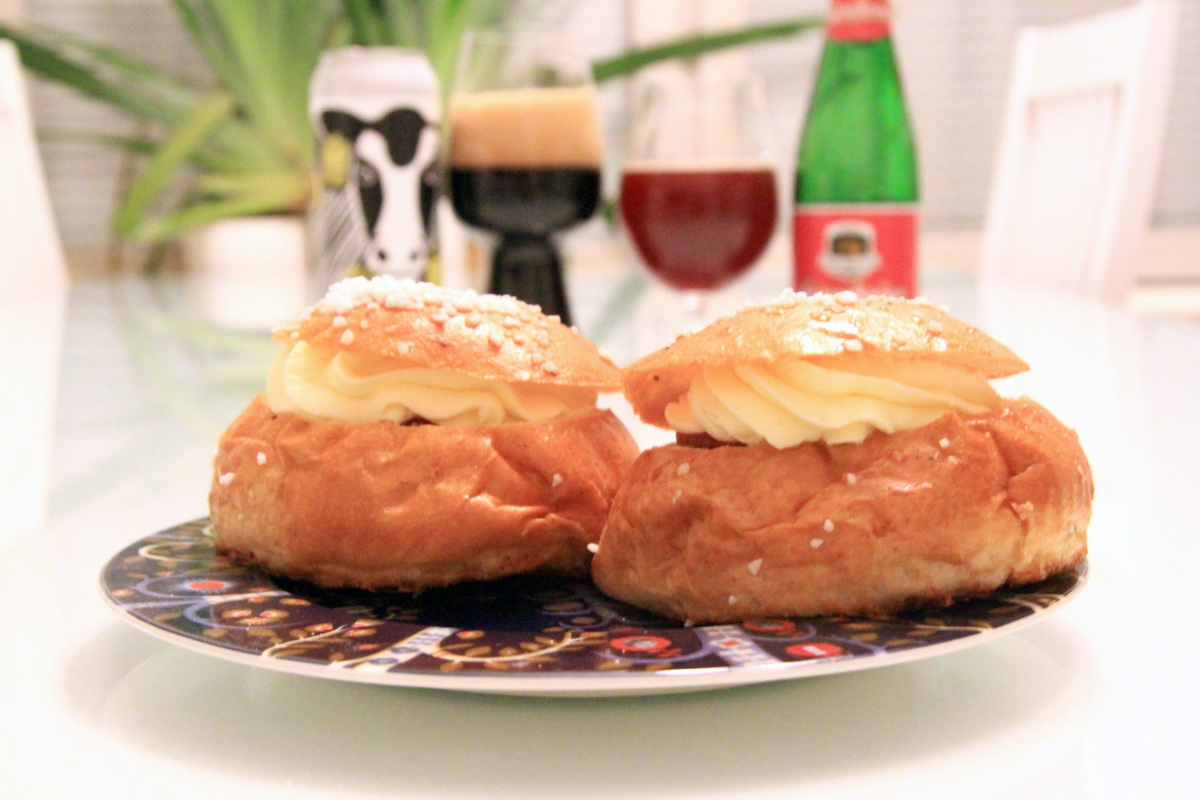 Vuosi sitten testasimme runebergintorttuja ja olutta— ja nyt päätimme testata, kuinka olut sopii laskiaispullien seuraksi. Koska edustamme molemmat hillopullakoulukuntaa, valinta oli helppo: nappasimme kaupasta mukaan Leivon leipomon mansikkahillolla ja kermavaahdolla täytettyjä pullia.
