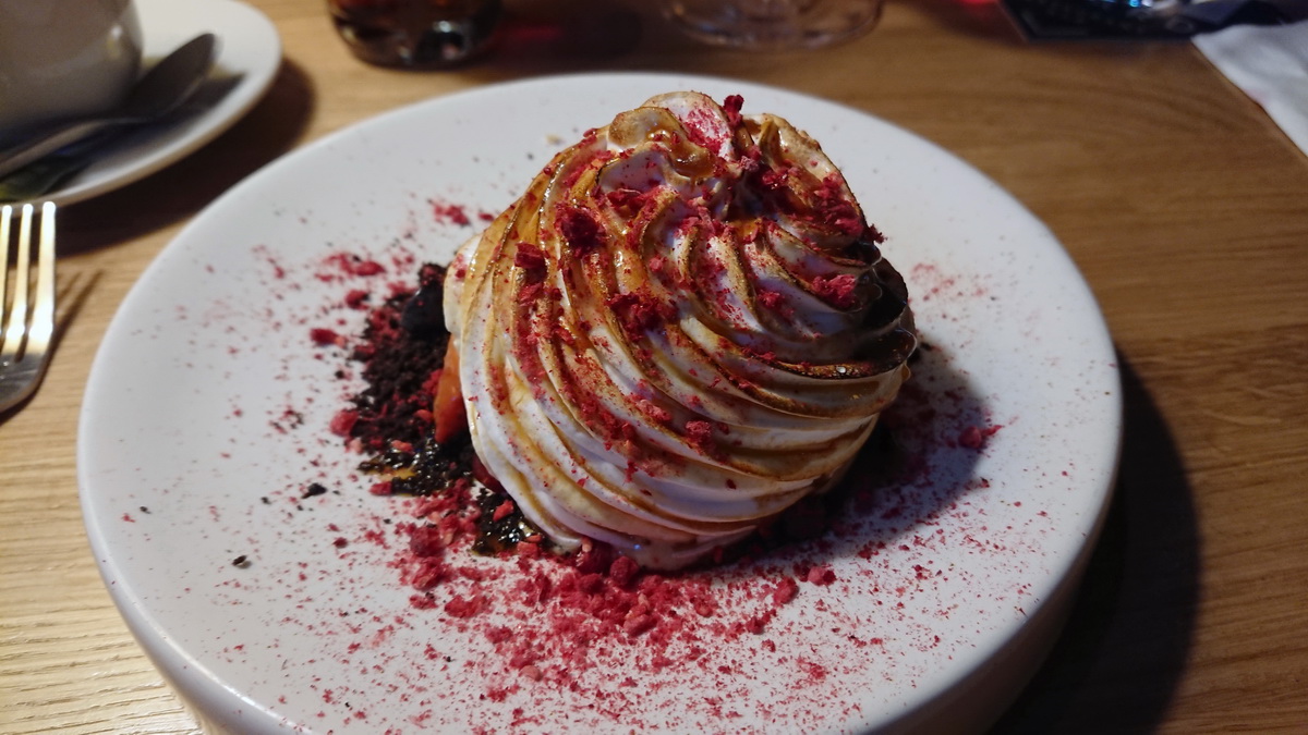 Jussin jälkiruoassa oli vaniljajäätelöä, Oreo-crumblea, marenkia, vadelmaa ja kinuskikastiketta. Savuisen pääruoan jälkeen se oli mukavan raikas, vaikka makeutta löytyikin. Jälkiruoan kanssa Jussi joi Fat Lizard Smooth Lava Red Alen. Oluen tuoksu oli karamellinen, mutta mukana oli myös greippiä, havua ja appelsiininkuorta. Katkerahko maku muistutti aromeiltaan tuoksua. Olut tasapainotti mukavasti jälkiruoan makeutta.
