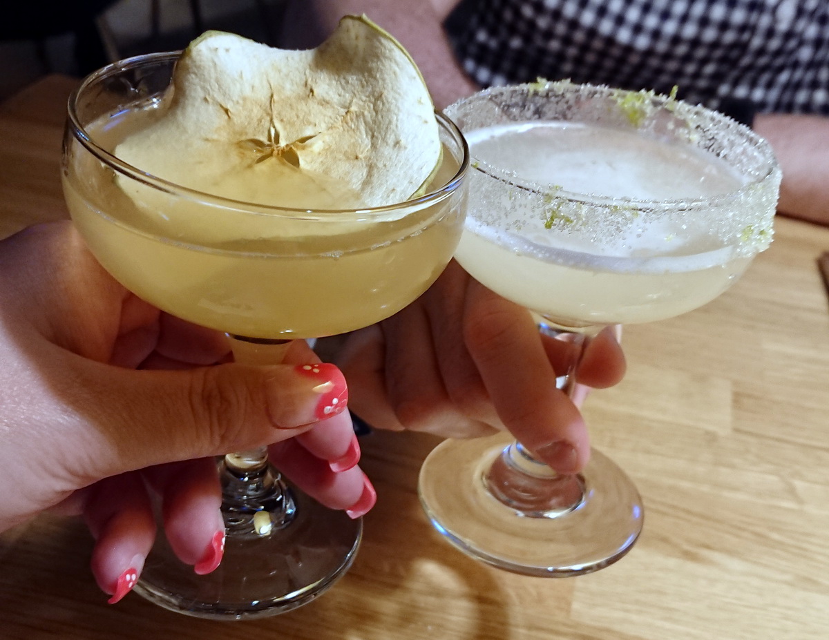 Alkuun Marjut yritti sulautua paikallisväestöön ja valitsi Otaniemen omena -drinkin, joka oli tehty tammikypsytetystä Kyrö Koskue Ginistä ja Attun suodattamattomasta omenamehusta. Omenamehu komppasi hyvin hieman vaniljaista giniä ja päällimmäiseksi jäänyt vaikutelma oli herkullisen omenainen. Pitää kokeilla tätä joskus kotonakin, kun mieli tekee jotain hedelmäistä eikä niin makeaa drinksua.