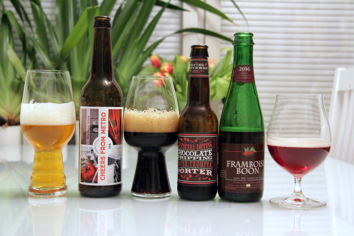 Valitsimme vertailuun kolme olutta: framboisen, koska se on maustettu vadelmalla, jonka voisi olettaa sopivan tortun vadelmahillon kanssa; vadelmalla maustetun porterin, koska se saattaisi sopia tortun mausteiden ja vadelmahillon kanssa ja IPA:n, koska oluen katkeruus voisi leikata hyvin tortun rasvaisuutta. Kuinka kävi?