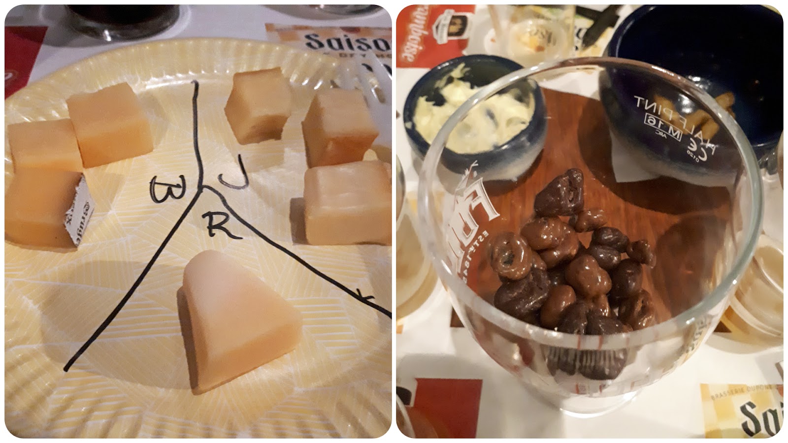 Ensimmäinen olut oli Saison Dupont Cuvée Dry Hopping 2016 (6,5 %), jonka kanssa tarjoiltiin ranskalaisia perunoita sekä majoneesia – ranskalaiset perunat ovat alun perin belgialainen keksintö, joten niiden voisi myös olettaa maistuvan belgialaisten oluiden kanssa.