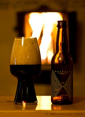 Itsenäisyyspäivän kunniaksi maisteluun epäilemättä suomalaista luonnosta innoituksen saanut olut – Haapala BnB:n Usvainen Uitto. Tämä olut on terva-aromilla maustettu porter. Haapala BnB:n pullot miellyttävät kovasti omaa silmääni pelkistetyllä ristopistoja muistuttavalla koristelulla.
