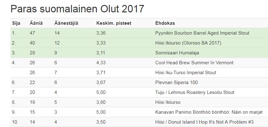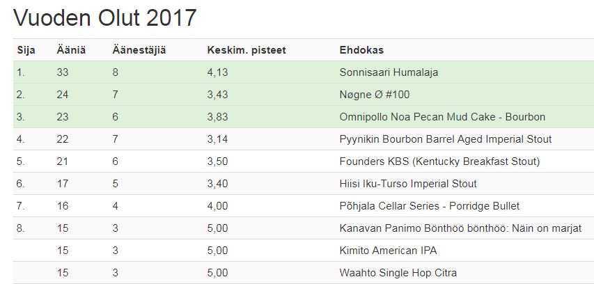 Vuoden 2017 parhaat oluet