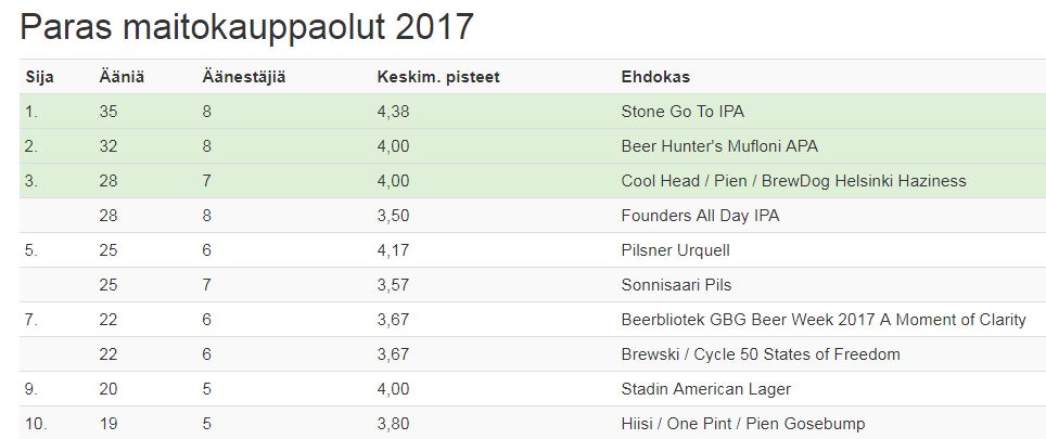 Edellisvuoden tapaan kuriositeetiksi Suomen Olutoppaan vuosiäänestyksien otteet muutamista kategorioista. Täydelliset tulokset näet— tästä linkistä.