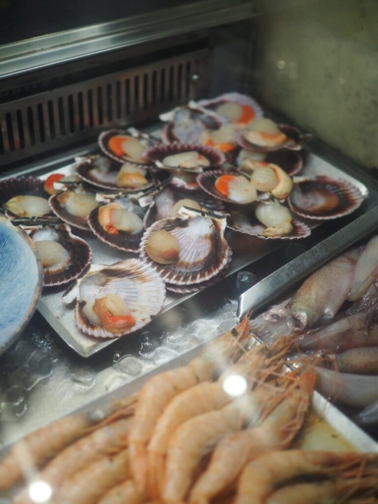 Viehättävä Restaurante La Traviata on tunnettu merenelävien tuoretiskistään, josta voi valita lautaselleen mm. kampasimpukkaa, jättikatkarapua, tonnikalaa tai mustekalaa.