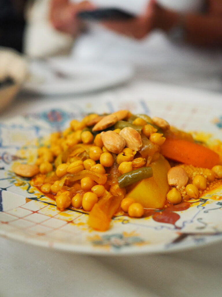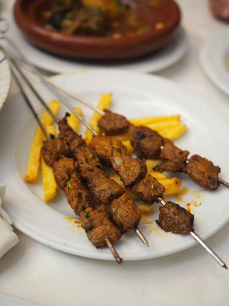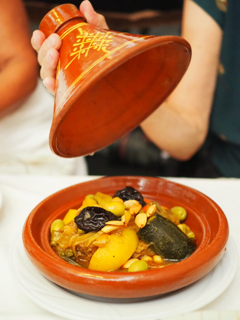 Täällä saa myös maistella marokkolaisessa tangine-padassa haudutettua lammasta. Tagine-ruuat ovat yleisiä Melillassa ja heijastavat ympäröivän Marokon kulttuuria.