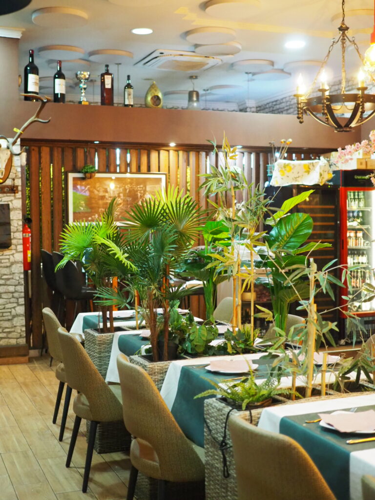 Ravintolan terassi on iltaisin täynnä paikallisia perheitä ja kavereita, ravintolassa syödään joko tiskillä seurusteluannoksia tai pöydässä pidemmän kaavan mukaan.