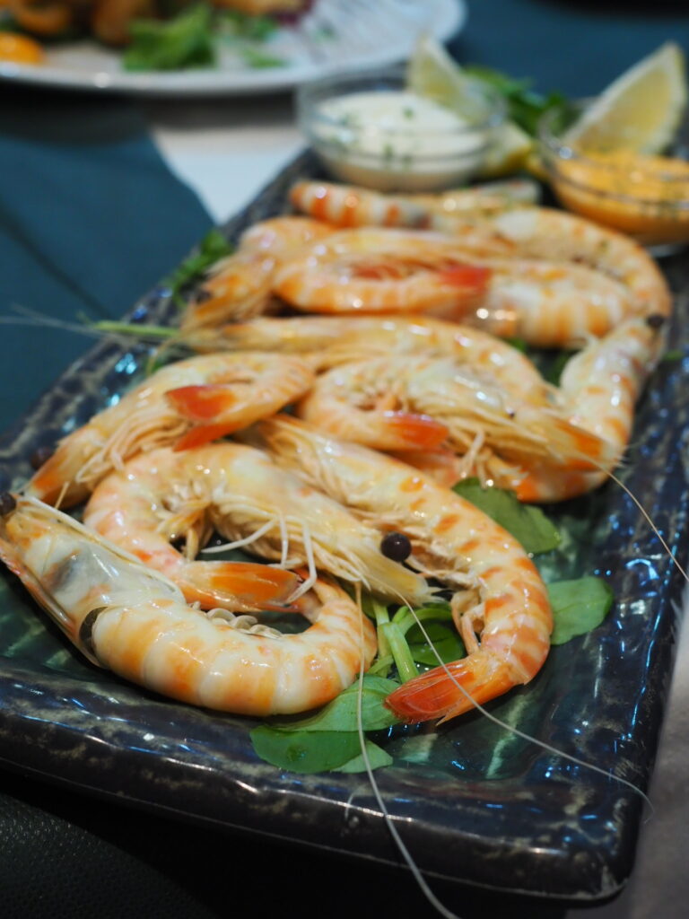Hyvässä fine dining -ravintolassa saa myös erinomaisen maukkaita jättikatkarapuja ja hyvin herkullista hiillostettua, kokonaisena tarjoilua purjoa voikastikkeessa.