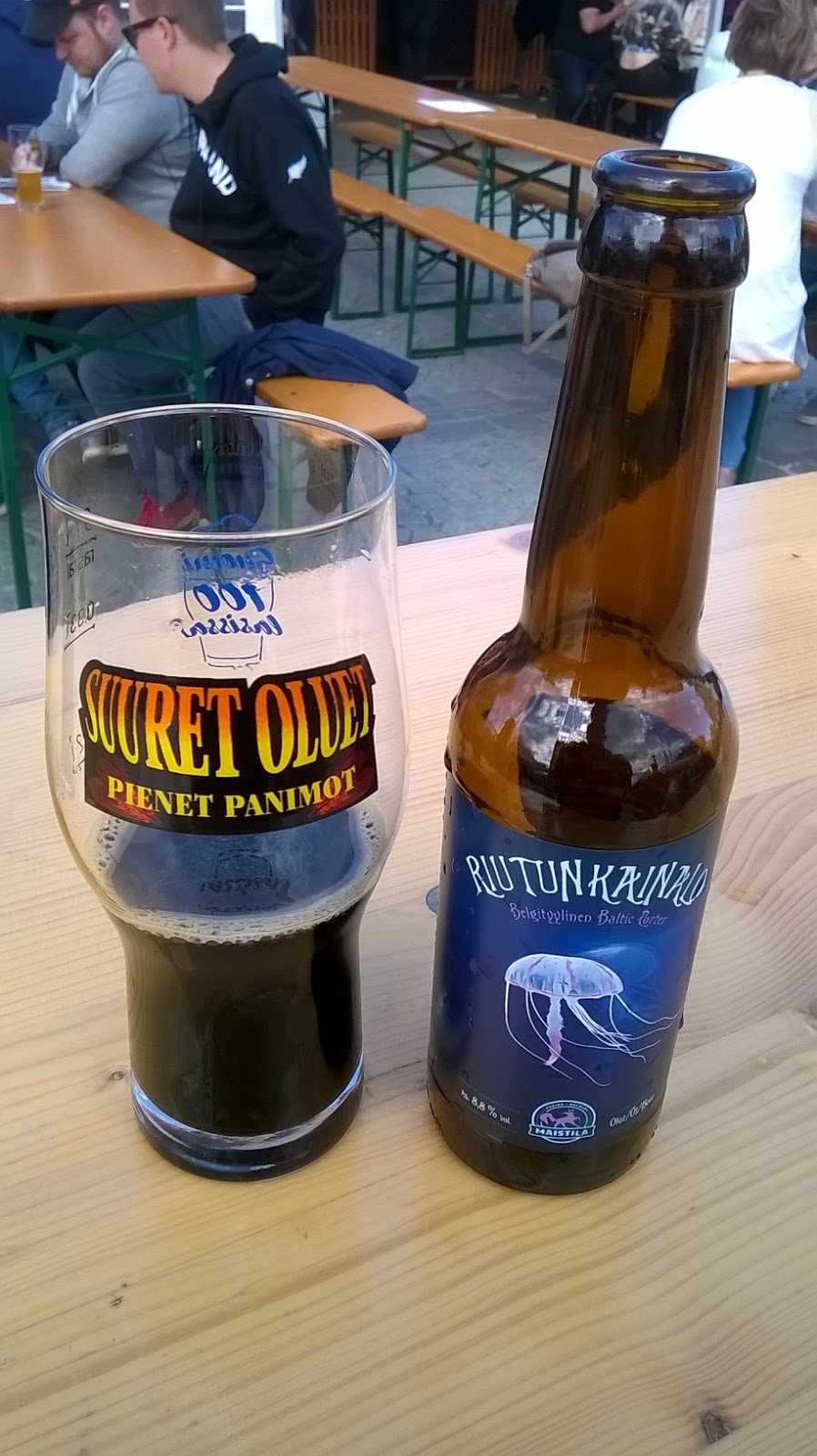 But because Thursday the 25th of May was the Ascension day and the next Friday was a clear out-of-office day, we – the neighbour gaffer and I – had decided to have a non-family trip to Tampere. We arrived to the venue one hour after the opening at 1 p.m. – to avoid the entrance fee (from 6 p.m. 10 €) and the evening crowd. After choosing and buying a decent beer glass with 4 € – not the thick traditional pint and not the ”Excuse me, I’m a craftbeer hipster” one deciliter tasting glass – we got our rally started with a handful of other people. No waiting lines in sight – great!