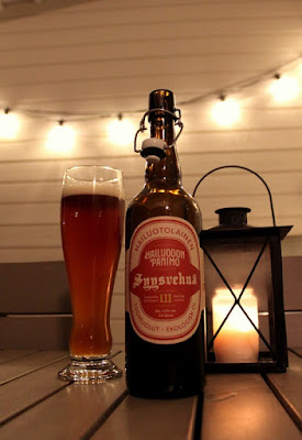 Kovasti kehutun Hailuodon Panimon oluita saatiin myös Jyväskylään ja vaikka tarjolla oli vain kahdeksan euron kolmevarttisia pakkausmuotoja, ylitti mielenkiinto kipukynnyksen ja miellyttävältä kuulostava Syysvehnä lähti testiin. Ensimmäisenä. Oli sen verran hyvä, että pitää testata loputkin. Pahoittelen paljastusta.