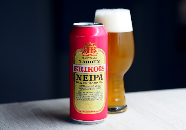 Hartwallin retrosävytteiset Lahden Erikois –tölkit ovat omaan silmään ehkäpä ne hienoimmat isojen toimijoiden eri brändien joukosta, mutta aika harvaksi on jäänyt itse sisältöön tutustuminen. Uusi New England IPA sai kuitenkin ylittämään kynnyksen, vaikka etu- ja jälkikäteen tuo kolmen ja puolen euron tölkkihinta hirvittikin.