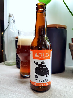 Bold on tosiaan reteähköä hirviolutta, Steam Beeriä, eli lagerhiivalla ”liian lämpimässä” käytettyä oluttyyliä. Laji ei suurimpiin suosikeihini kuulu, joskin mutkattomana ja yleensä mukavan tasapainoisena tyylinä varma ja helppo valinta moniin tilanteisiin onkin. Kalle on aromihumaloinut omansa ihastuttavalla Mandarina Bavarialla, mikä sopiikin tähän saumaan varsin aukottomasti. Herkules ja Northern Brewer täydentävät kirjoa osaltaan. Jyväskylässä tätä taitaa olla hyllyssä ainakin Länsiväylässä ja Seppälän Cittarissa sekä Explosivessa.