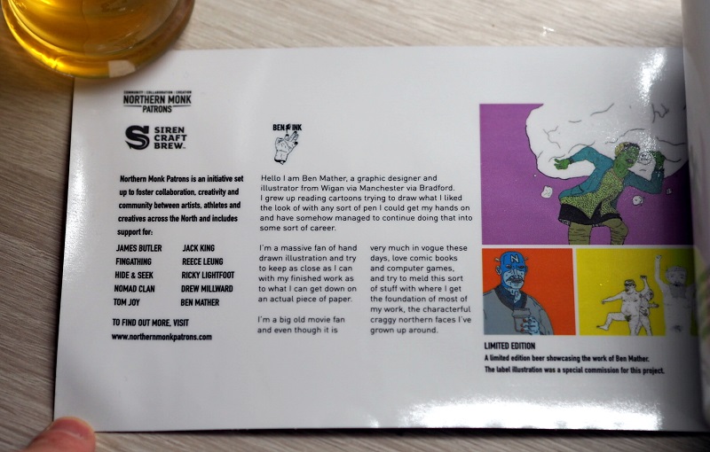 Tähän keitokseen on kutsuttu kaveriksi craftpaja Sirenin väkeä ja taiteellista suuntaviivoja vetelemään kuvittaja-graafikko Ben Mather. Ilmeisesti kollabopanimoiden geografisen sijainnin suhteen ei olla niinkään tarkkoja, kerta kumppaniksi on kelvannut eteläisemmän Sirenin lisäksi mm. ulkomaailman vaikuttajat Against the Grain, Alefarm, Other Half ja Bissell Brothers. Ei sillä, että asialla sen suurempaa merkitystä on, mutta tiettyhän tuo the North -teeman olisi voinut ihan loppuun astikin viedä. Sikäli kun sen idean olen edes oikein ymmärtänyt…