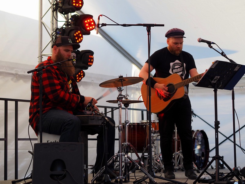 Kesäkuun myötä epävakaiseksi heittäytynyt säätilamme ennusteli torstain puolella vaikuttaneen harmaan sadekelin kiusoittelevan tapahtumaa vielä perjantainakin, mutta Jyväskylän kesään kiinteänä osana kuuluva aurinko päätti onneksemme toisin. Ei se ilta nyt mitään helleiloittelua tarjonnut, mutta aurinko paistoi ja tarjosi lämpöä ihan riittämiin. Ja mahdollista lisälämpöä haettiin sitten telttojen suojista ja anniskelutiskeiltä.