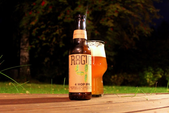 Roguen oman ranchin toimintaa sivuttiinkin jo tuossa 7 Hopin yhteydessä, joten siirrytään asiassa hieman oikoen eteenpäin. 4 Hop IPAn monipuolinen mallasrunko koostuu seuraavista raaka-aineista: Rogue Farms Dareâ„¢, Riskâ„¢, Dareâ„¢ R-1, Dareâ„¢ R-3, Maier Munich & Dextra Pils ja humalointi on nimen mukaisesti hoidettu neljän lajikkeen voimin: Rogue Farms Rebel, Freedom, Yaquina & Alluvial Hops. Toimivaa menoa alusta loppuun.